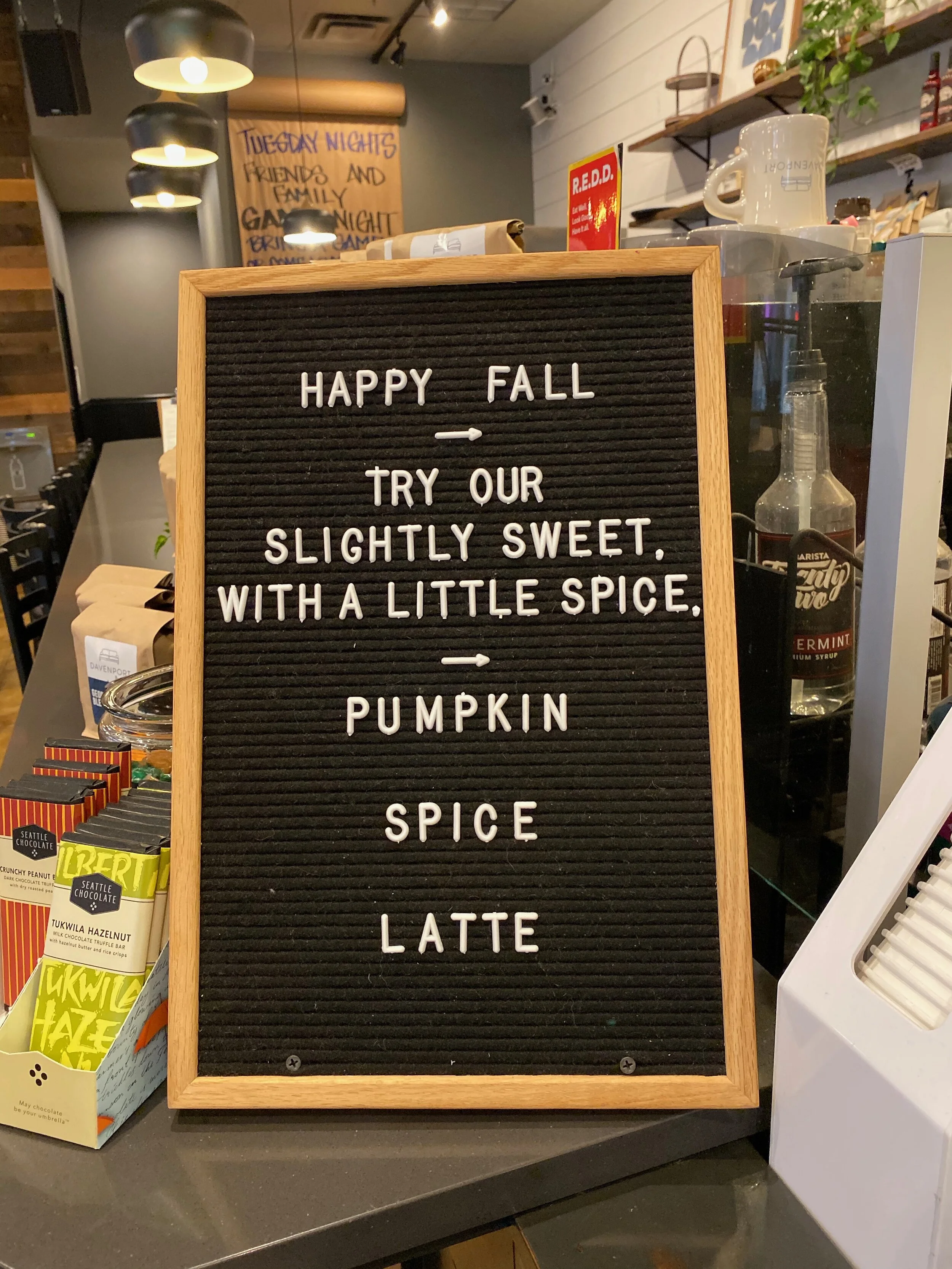 I took it upon myself to go around and try as many pumpkin spice lattes as I could. I’m looking for places that make their mix and not just using Torani syrup (not that there is anything wrong with that, but…). I’m looking for: