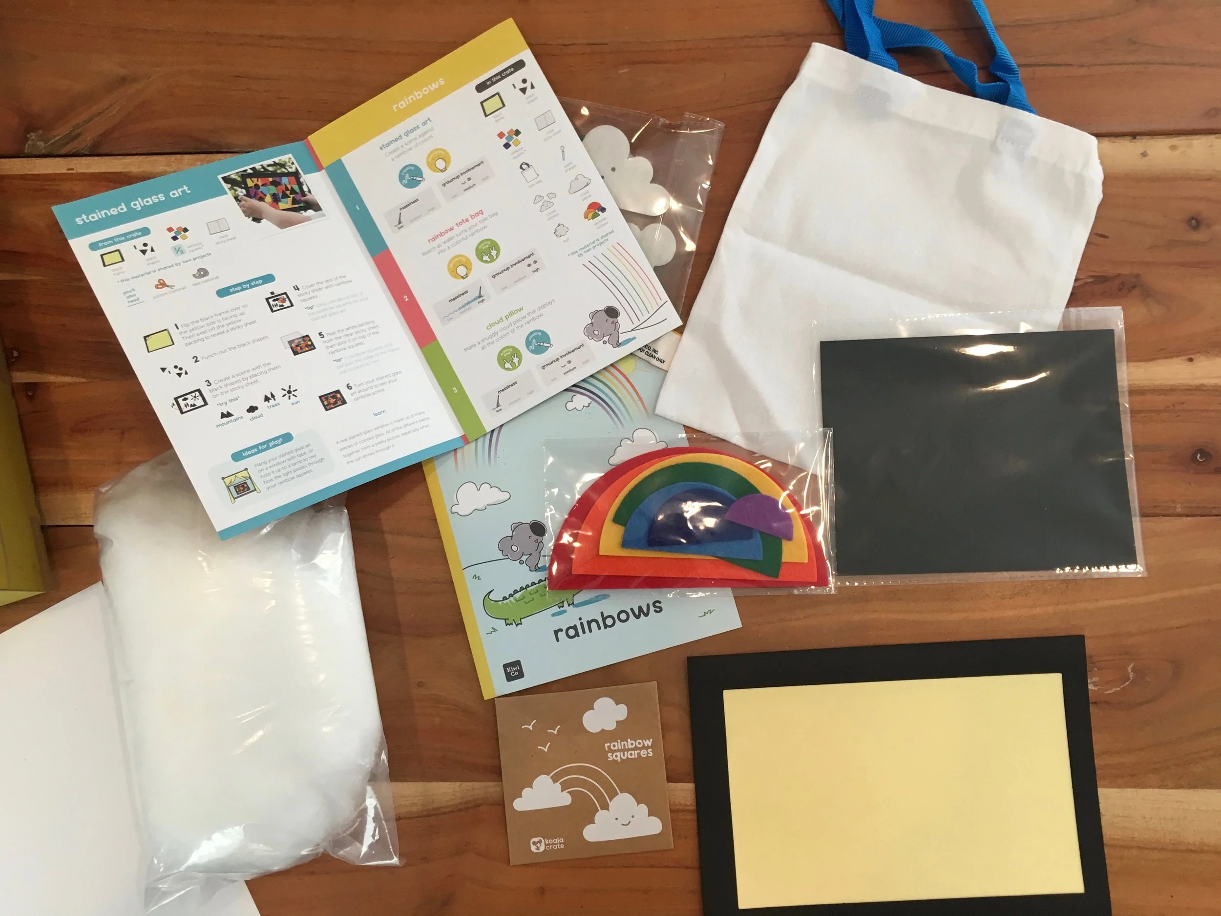 Of course, as soon as the box was open, we had to start a craft immediately. The box theme was Rainbows. Ahh, cute! I should have checked out the instructions and all that was inside before letting him know about the box’s arrival because I was scrambling a bit to get a closer look at what we had to do. (You know, just living and learning).