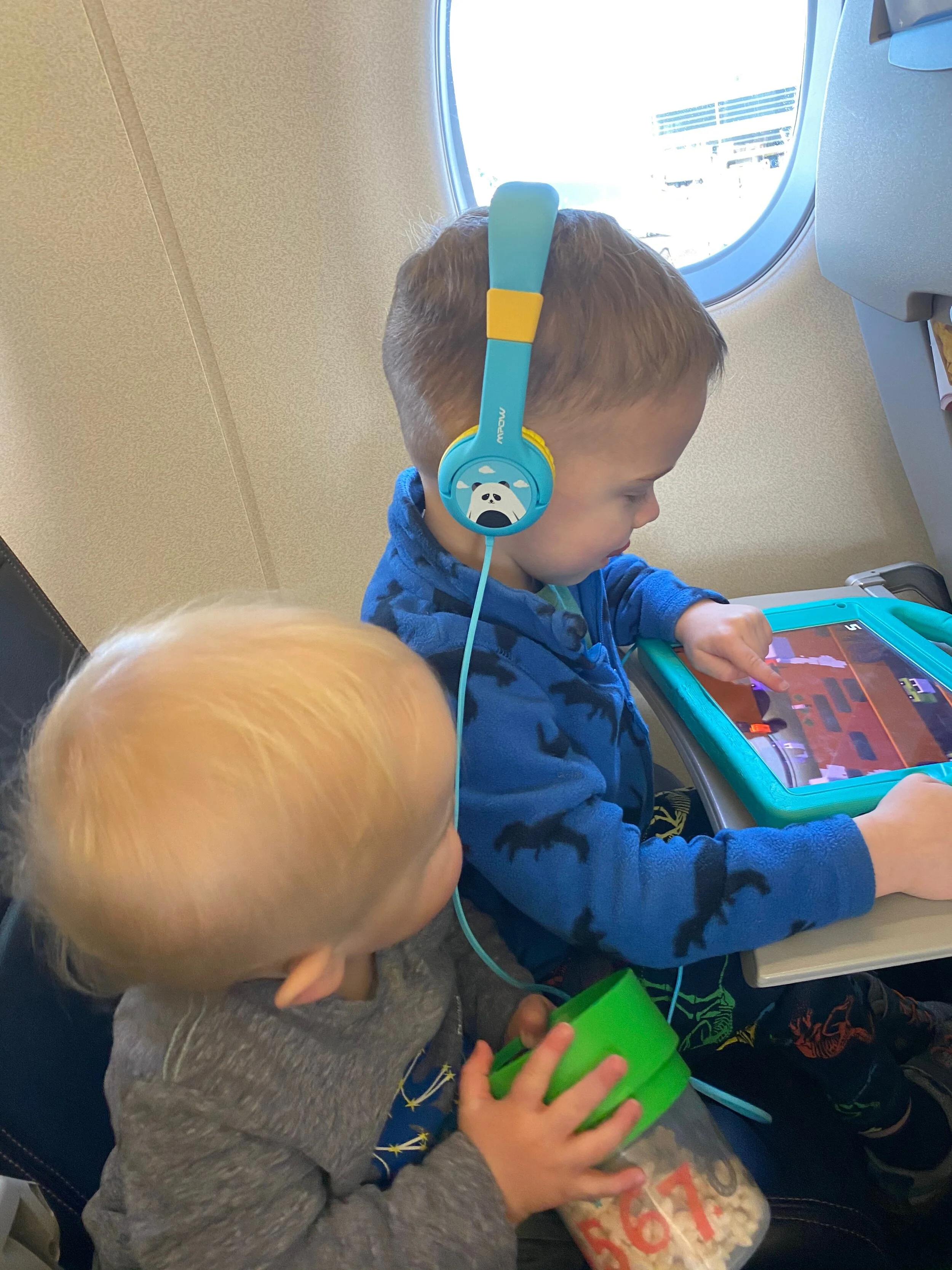 Headphones: Caleb doesn’t like to wear them, so we end up with the volume low and no headphones, but if your kid will wear them then I’m sure the other passengers would be appreciative.