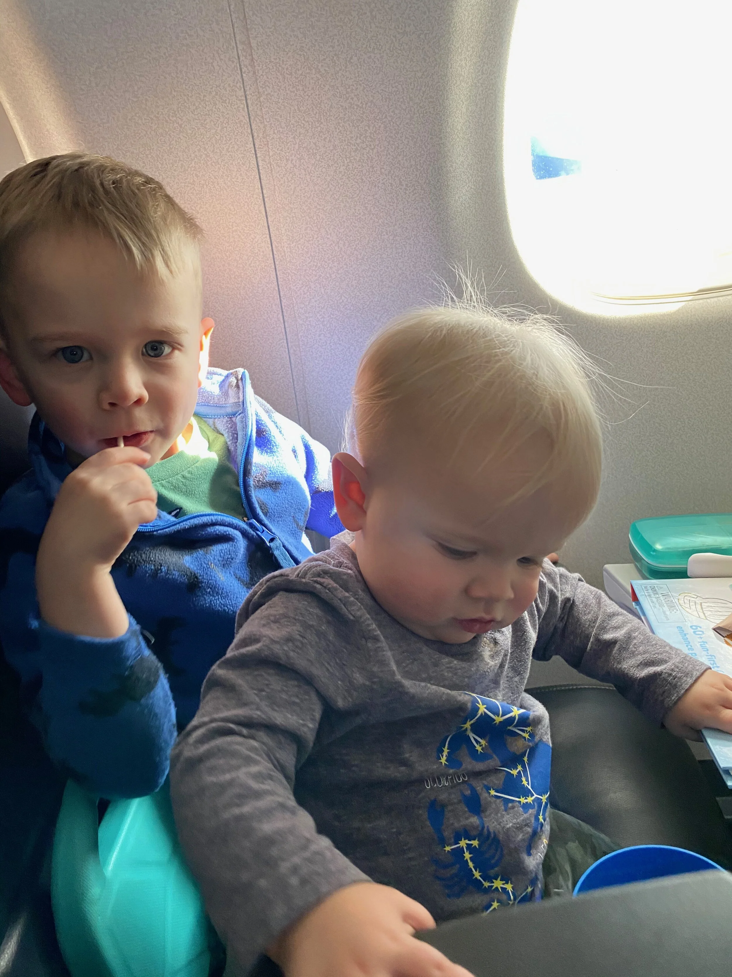 Now, to the kids talk. I recently took a flight with both boys (Caleb is 4 yr & Wesley is 14 mo) on my own from Sea-Tac (hehe) to San Diego to visit my parents (grandparents trip!). While I’ve flown with just Caleb and me a bunch in the past, I was very anxious about flying on my own with two kids. Two would outnumber me and I honestly can’t remember what I did with Caleb - something I like to call parental amnesia. I knew Caleb (4 yrs old) would be relatively easy since I can basically just hand him an iPad and he’s occupied for a good while. However, Wesley was another story. He’s 14 months, so he’s not watching shows or playing games, yet. He’s also in that very awkward stage between crawling and walking and is very, VERY wiggly. In addition, I remember Caleb being a terrible airplane napper (so I do remember somethings), so I wasn’t banking on that for Wesley either (rightly so, apparently, as he did not nap).