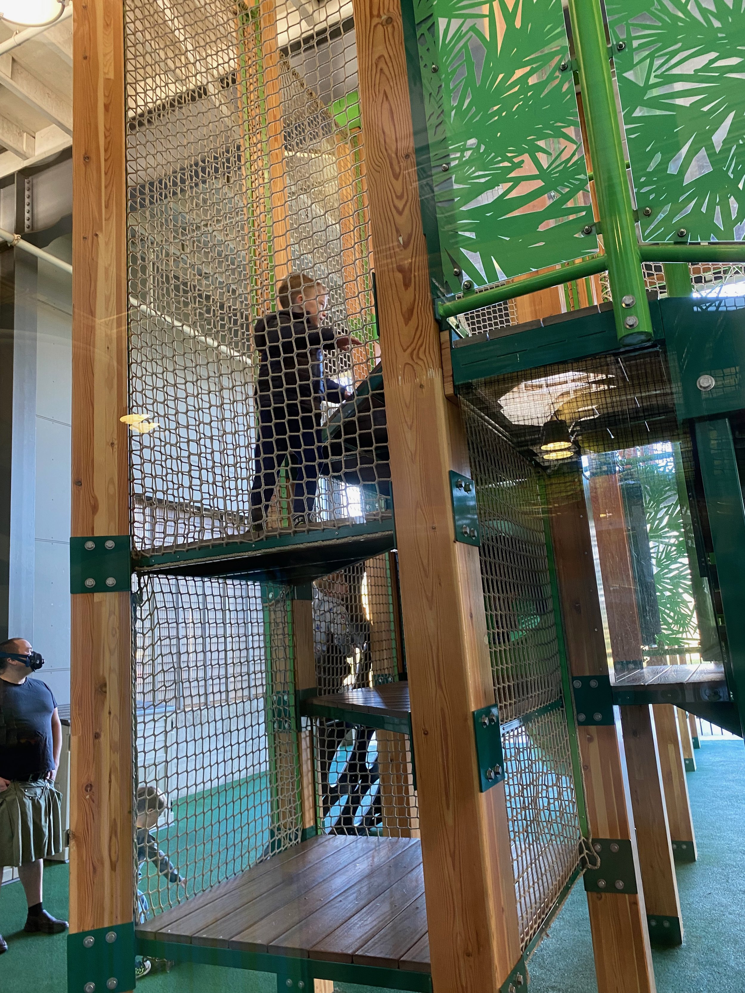 The outdoor space has lots of climbing, bridges, and slides to go down. Most of it is actually climbing up to the high structure, hence the height requirement.